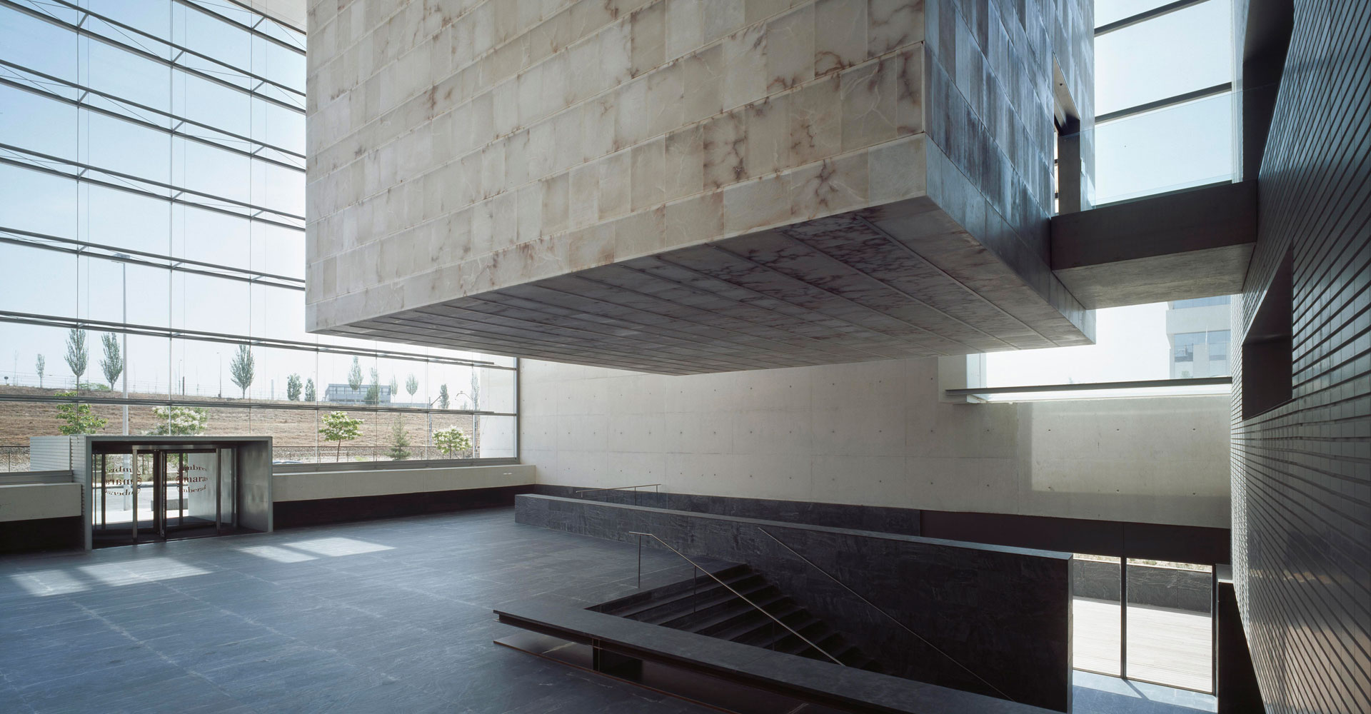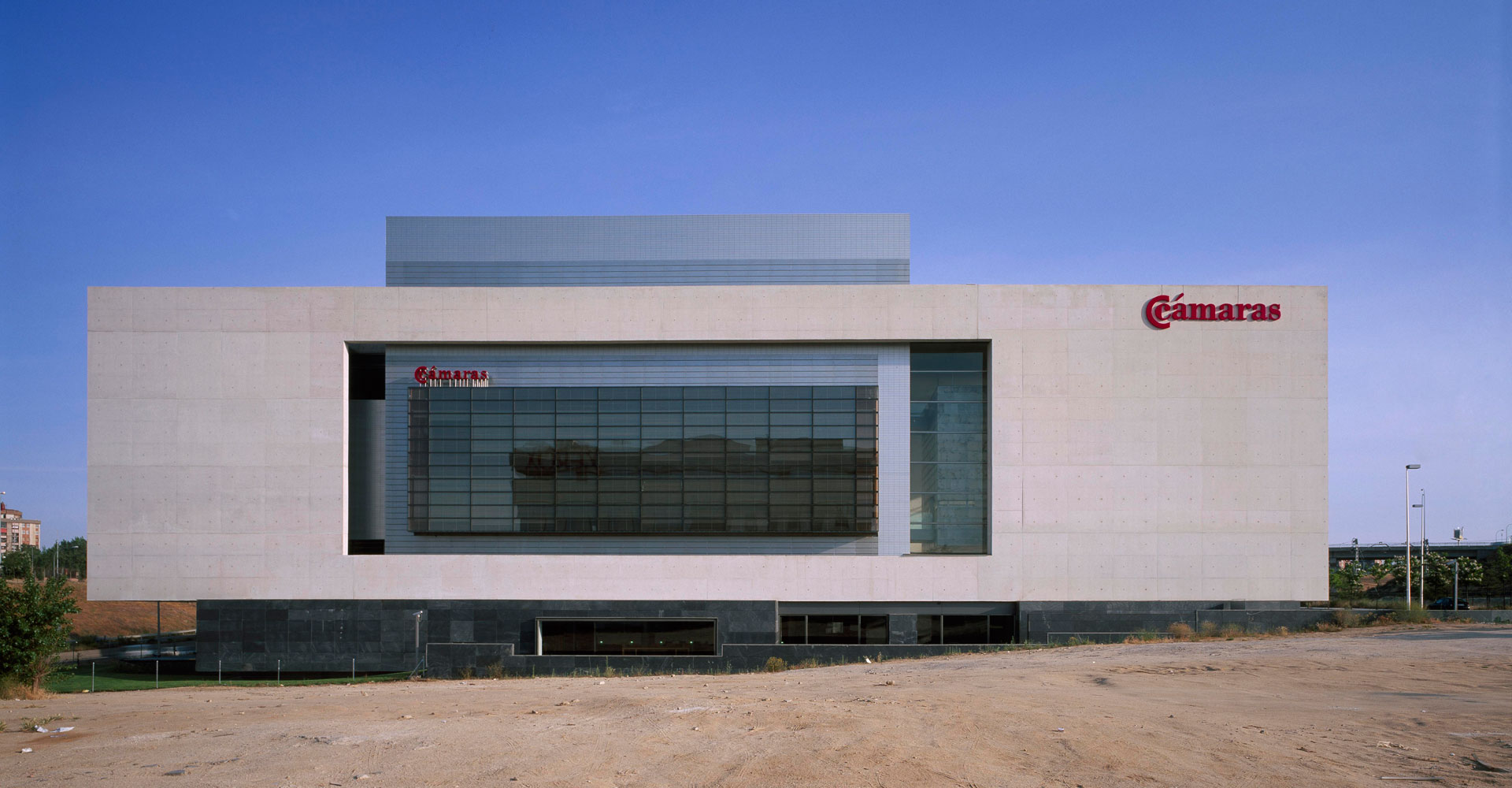 Le mot « chambre » se réfère à un endroit fermé, comme la cavité d’un appareil photo. « Chambre » signifie également assemblée privée ou réunion de personnes. Le projet se limite à donner forme à ces deux significations. Nous avons déposé sur un terrain rectangulaire, au bord de l’autoroute qui entoure Madrid, sur un socle en pierre, une boîte de béton hermétique, comme s’il s’agissait d’un objet.