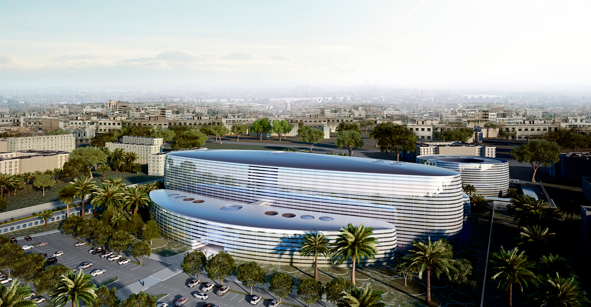 Nous avons particulièrement tenu compte de l’échelle humaine, du besoin de soleil et de s’en protéger et, surtout, nous avons voulu doter la zone où séjournent les patients d’espaces qui donnent de la dignité à leur passage dans l’hôpital, pour eux comme pour leur famille. Nous avons voulu nous éloigner des couloirs angoissants et obscurs qui caractérisent la majorité des hôpitaux et avons, à cet effet, ouvert de grandes cours intérieures. La qualité de l’espace de ces zones, parcourues par les patients et par les membres de leur famille qui leur rendent visite, devient un élément clé du design. Les tours sont positionnées de façon à fournir un accès immédiat aux zones fonctionnelles que sont les salles d’opération, les salles d’accouchement, les urgences et le diagnostic, et à les rendre accessibles aux visiteurs. Les tours d’hospitalisation deviennent en outre la marque de réclame de l’hôpital.