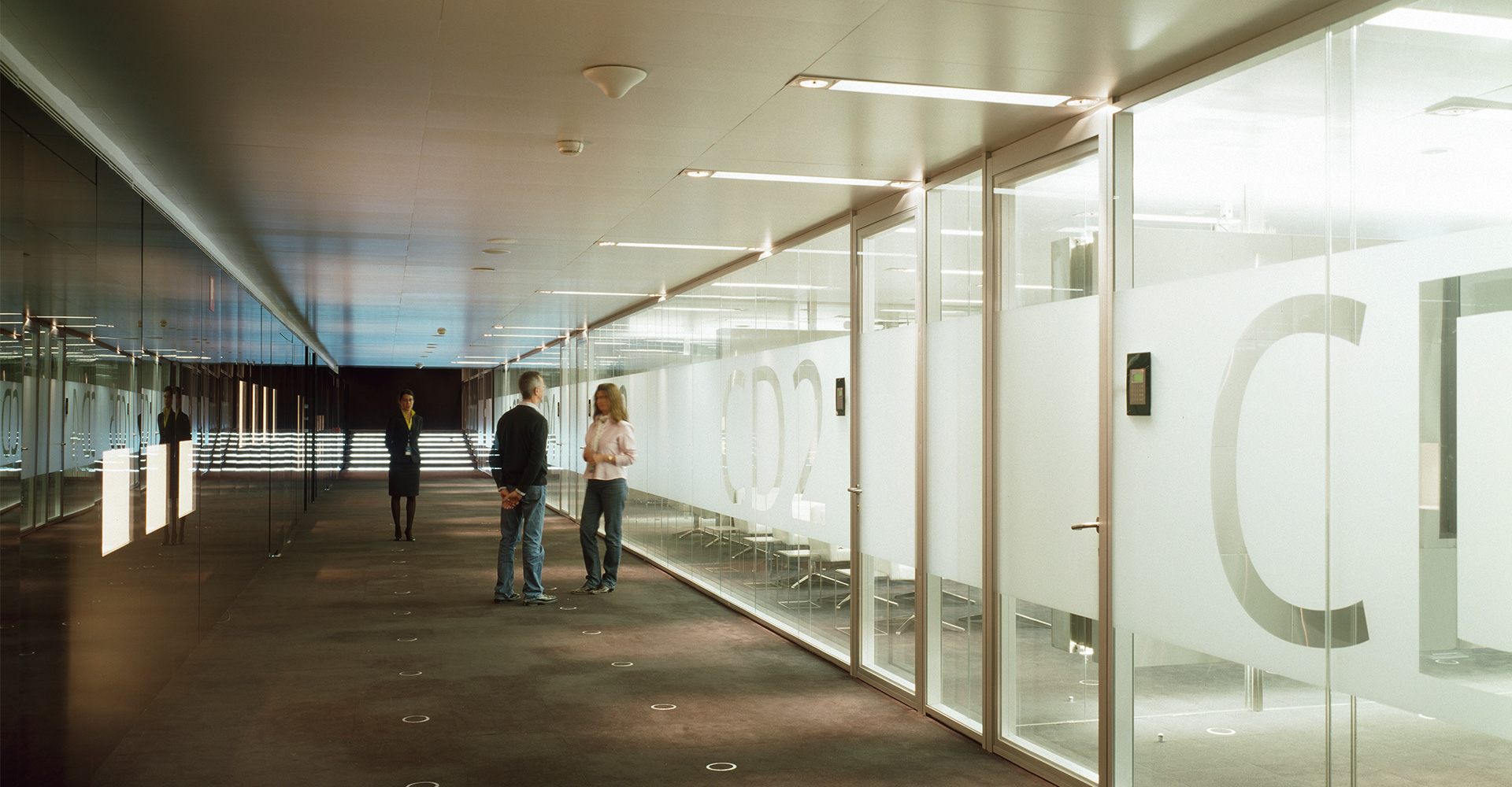 La fonction majeure du design intérieur du siège de Telefonica est de proposer un environnement de travail confortable et motivant pour tous les employés. La qualité environnementale des zones de travail provient de l’abondance de lumière naturelle, de l‘amplitude des vues et de la présence constante des espaces verts, ainsi que du confort thermique et acoustique et de l’ergonomie du mobilier.