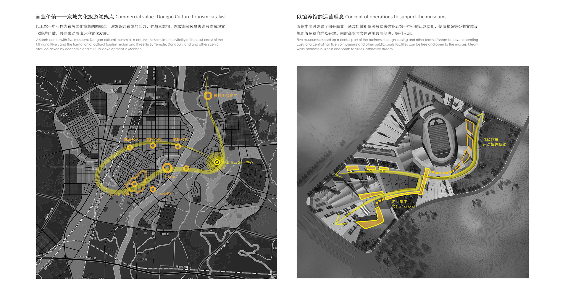 Un musée de la culture, un musée de la ville, un musée des sciences et de la technologie, une bibliothèque, un grand hall d’expositions et un centre de sport composeront ce complexe développé sur une surface totale de 260.000 m2. Le projet se situera dans un environnement naturel, à proximité de plusieurs bâtiments de l’université de Meishan.