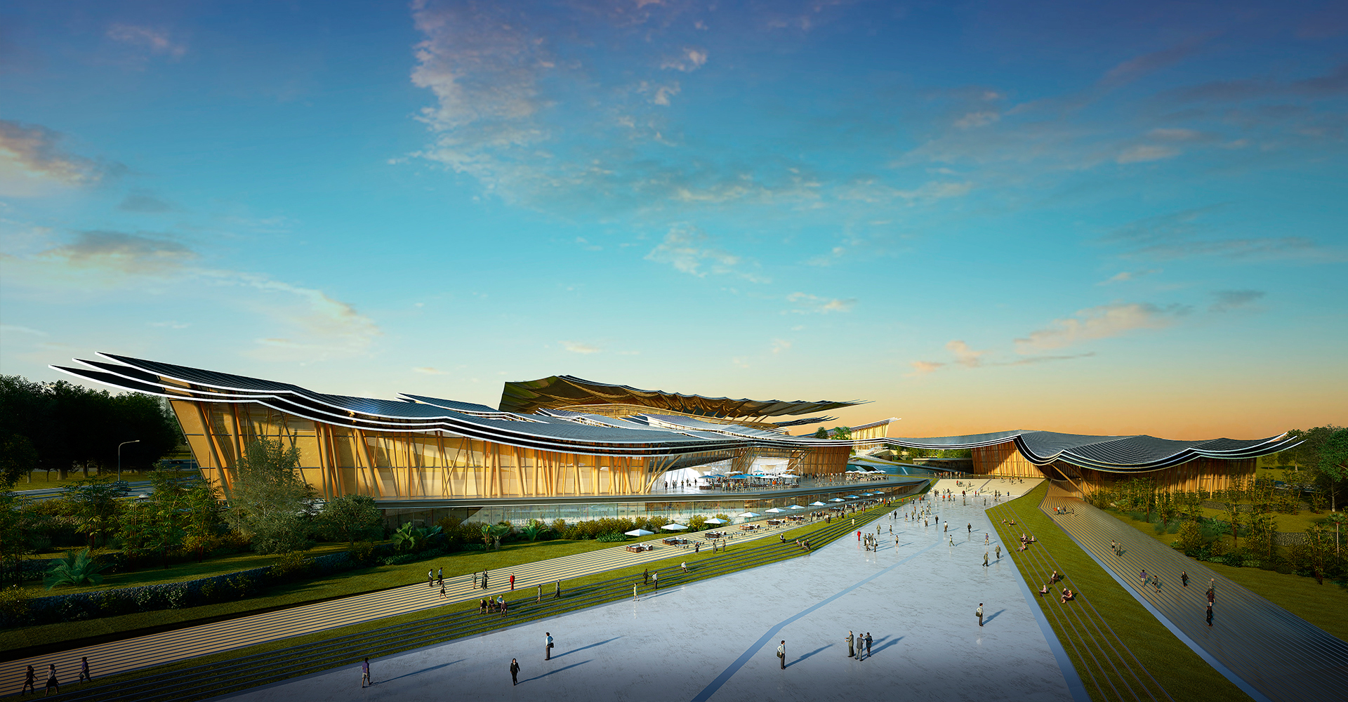 Cette approche, qui a remporté le concours, transmet l’essence des rizières des terrasses de la province de Sichuan et revisite les courbures des toits traditionnels chinois et leur symbolique architecturale caractérisée par une structure en bois. Le projet prétend explorer la relation entre l’architecture traditionnelle et l’architecture contemporaine.