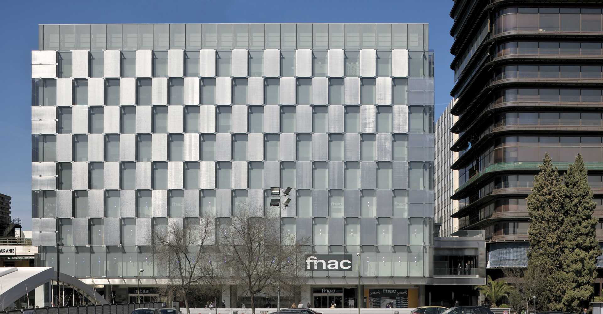 Des pièces en acier qui montrent ou dissimulent, selon la perspective, les cases obscures du damier de l’enveloppe intérieure. Une façade « en vie » qui, selon l’endroit et le moment où l’on l’observe, vibre à la lumière du soleil ou s’éteint avec celle-ci.