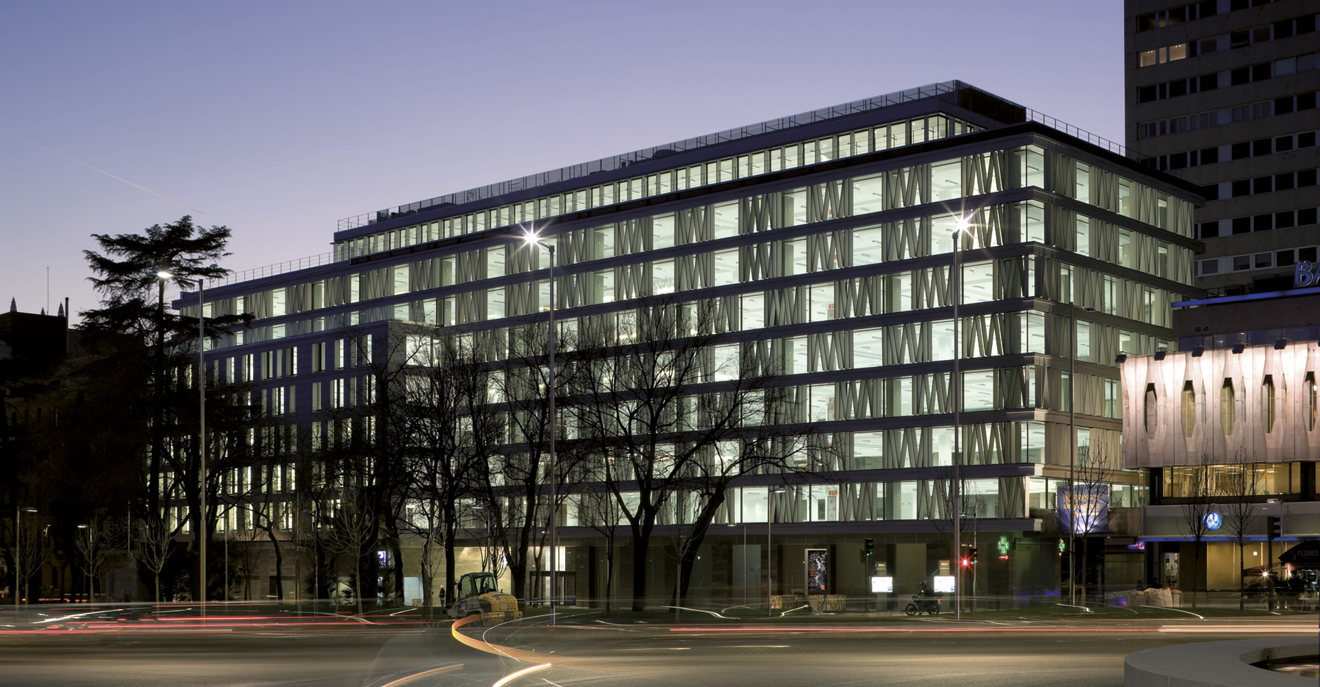 En raison de son exposition au boulevard principal de Madrid et de sa perception par une grande quantité de voitures qui passent, les lames de céramique de la façade améliorent l'interaction de transparence et de densité.