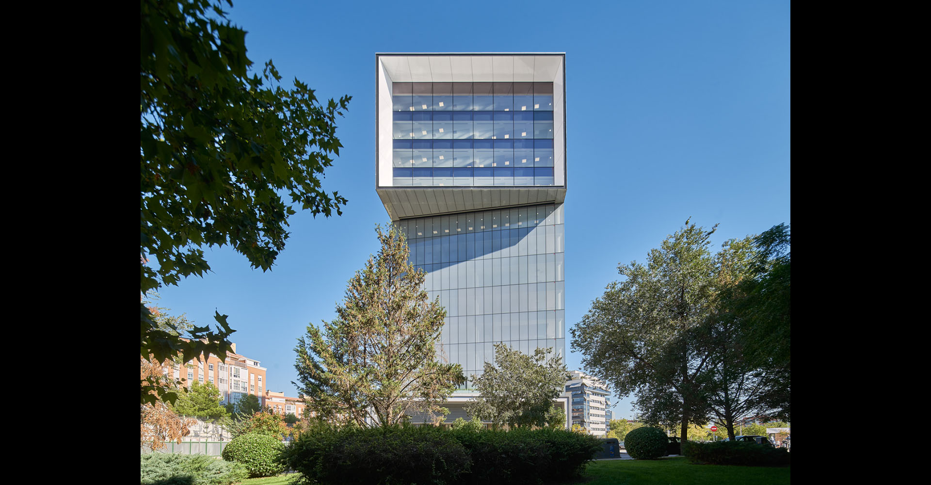 Visionary n'est pas un bâtiment de plus; c'est un point de vue sur le ciel et l'avenir de Madrid, avec des vues uniques sur la ville et les montagnes. Avec un noyau déplacé pour obtenir des espaces diaphanes et flexibles, il est devenu un poumon vert sur la ville.