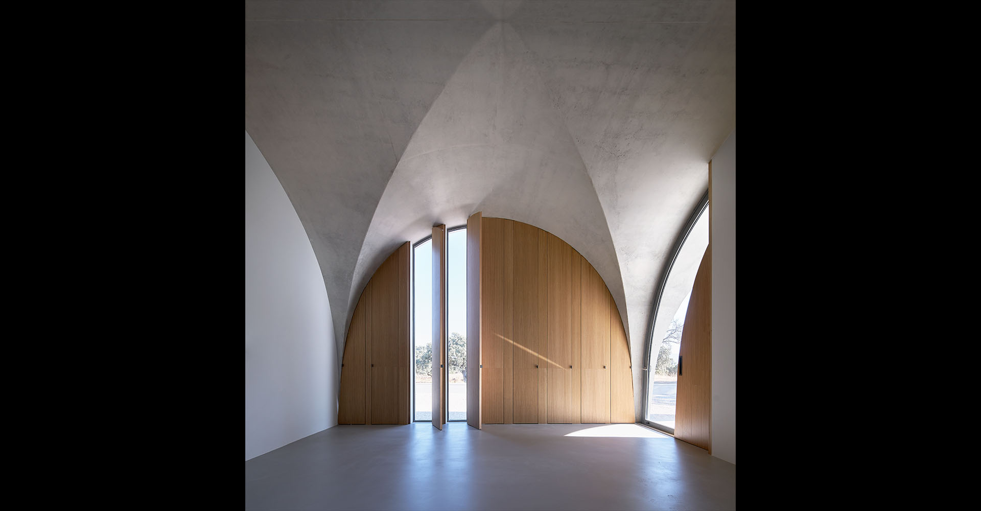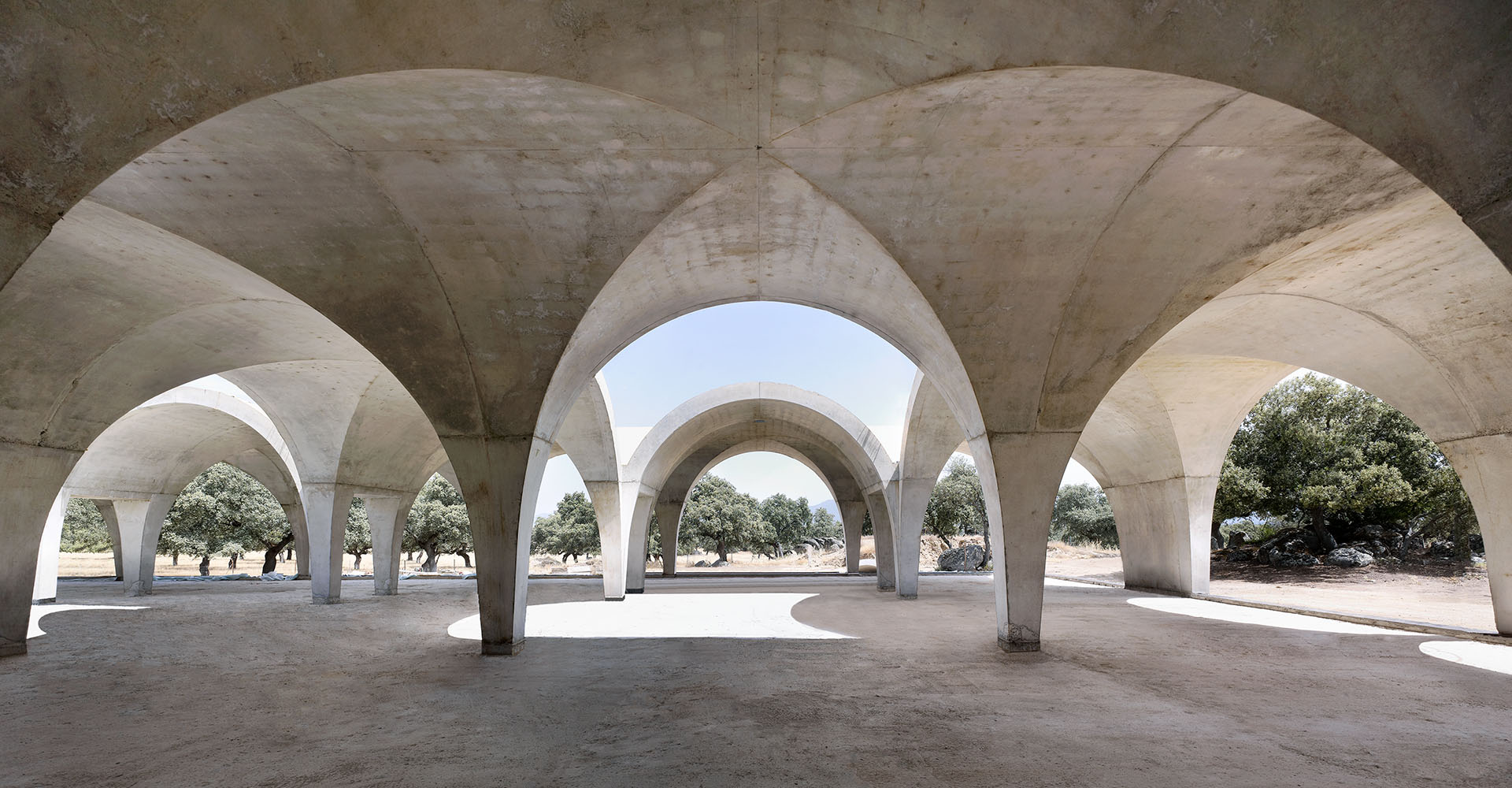 The project brings back the traditional corner dome construction, once common in the farmhouses of this region between Extremadura, Castilla, and AndalucĂa. This area, now home to the world's largest dehesa, owes its prosperity to the centuries-old respect its people have shown for the oak groves that sustain it.