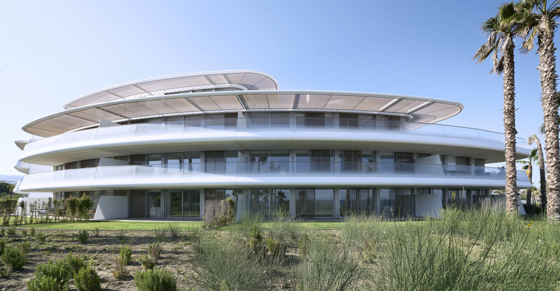 Sus formas curvas nos envuelven como lo haría una ola; sus barandillas, sus terrazas, sus toldos de tela, nos hacen dudar de si realmente nos encontramos en un edificio o un barco varado en la playa. Y es que el proyecto ha sido concebido para recordar a sus habitantes, en todo momento, que viven a primera línea de mar. A través de grandes ventanales de cristal se tendrá una constante referencia a la luz mediterránea, al mar, a la playa, al horizonte, a las vistas lejanas… Y es que son éstas, y no otras, las cualidades que convierten a Costa Natura en un lugar único. Éste es, en último término, su mayor y más verdadero lujo.