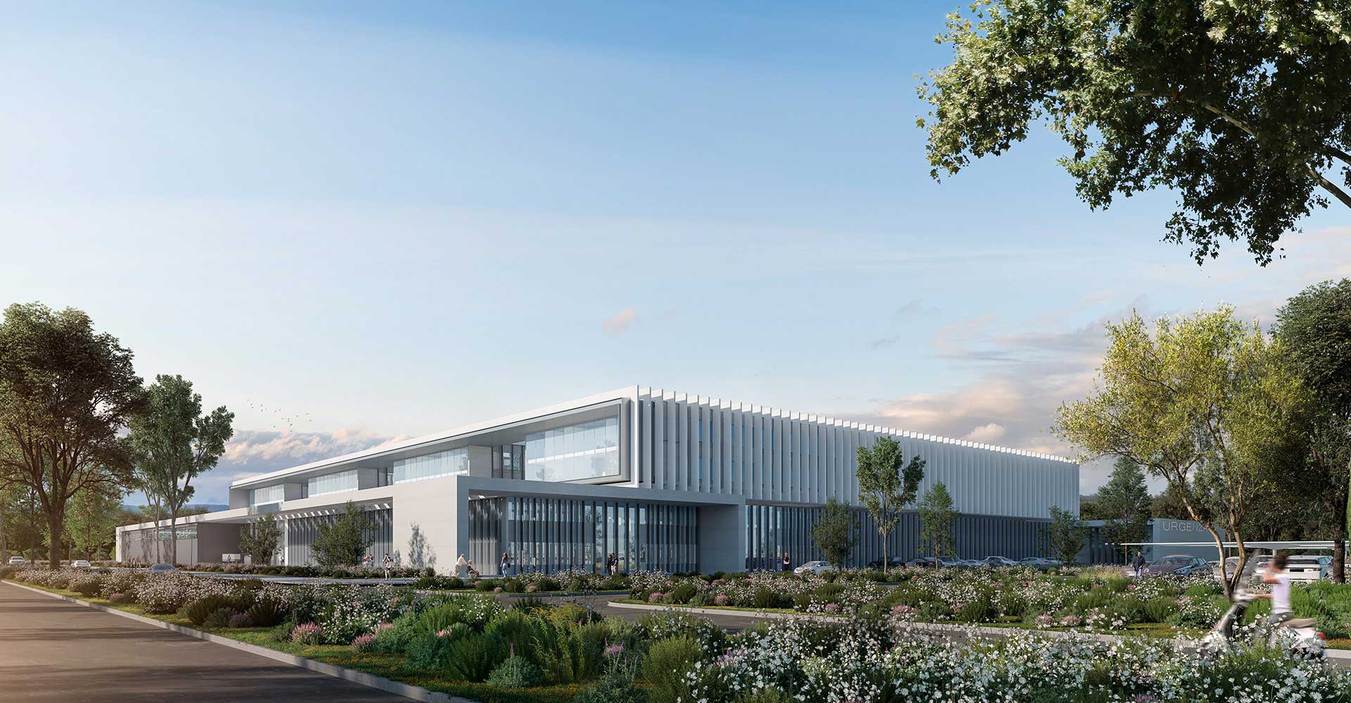 Situé à proximité du carrefour entre la SS124 et l'autoroute Siracusa-Catania, cet hôpital sera le premier en Italie à disposer de chambres individuelles pour 100 % des patients. Le nouvel hôpital de 425 lits sera entouré de 16 000 m2 de parc urbain et de 18 000 m2 d'eau, dans un souci de confort, d'intimité et d'efficacité.