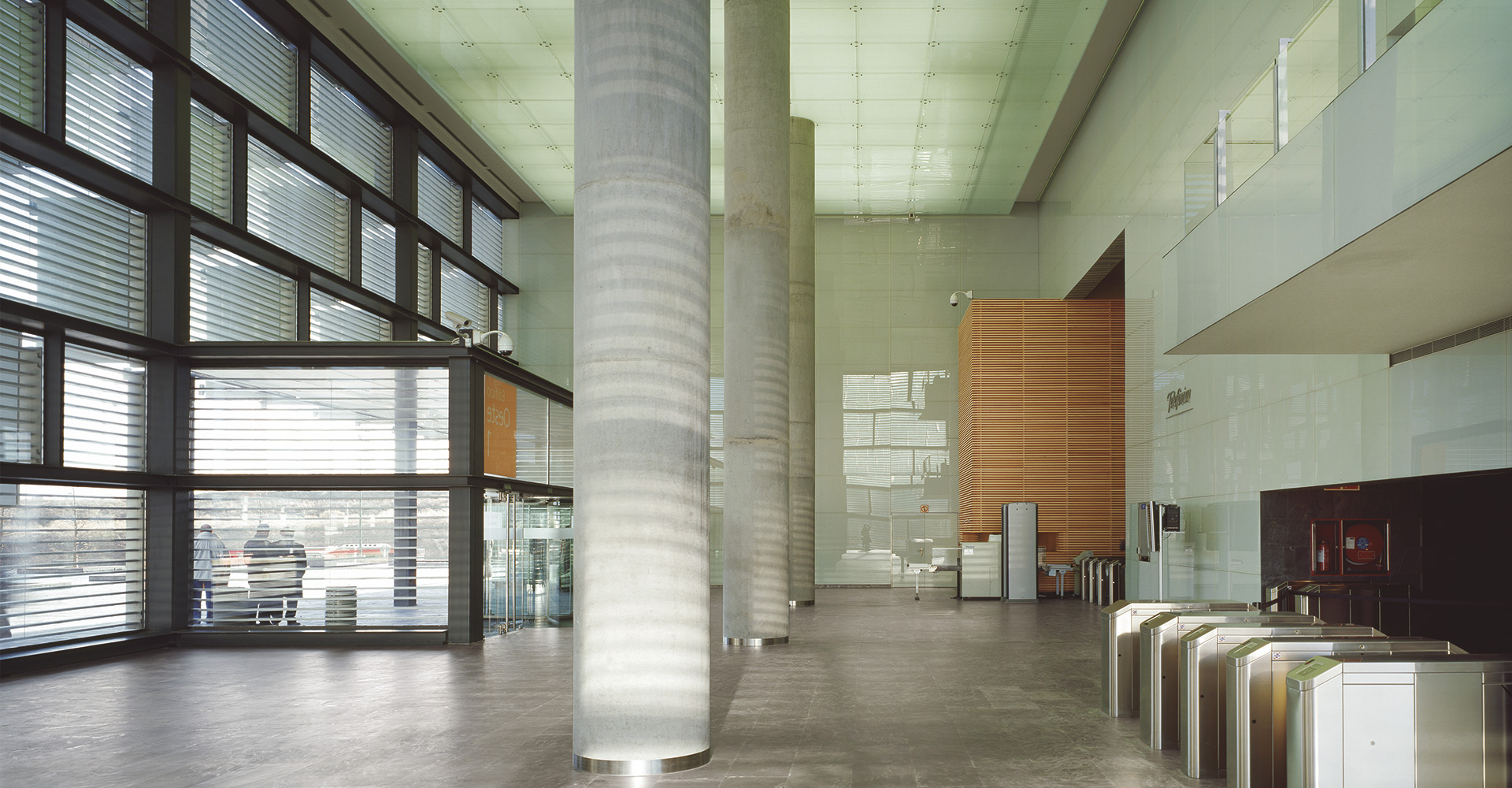 La fonction majeure du design intérieur du siège de Telefonica est de proposer un environnement de travail confortable et motivant pour tous les employés. La qualité environnementale des zones de travail provient de l’abondance de lumière naturelle, de l‘amplitude des vues et de la présence constante des espaces verts, ainsi que du confort thermique et acoustique et de l’ergonomie du mobilier.