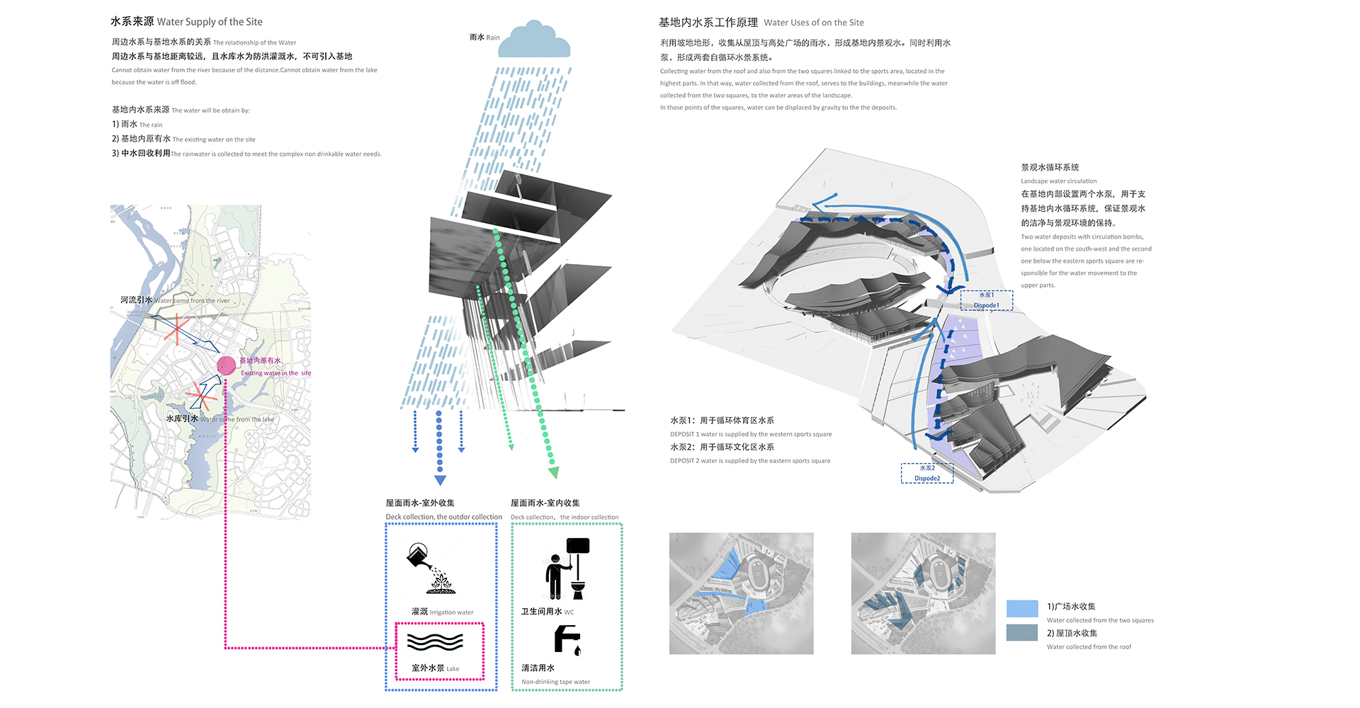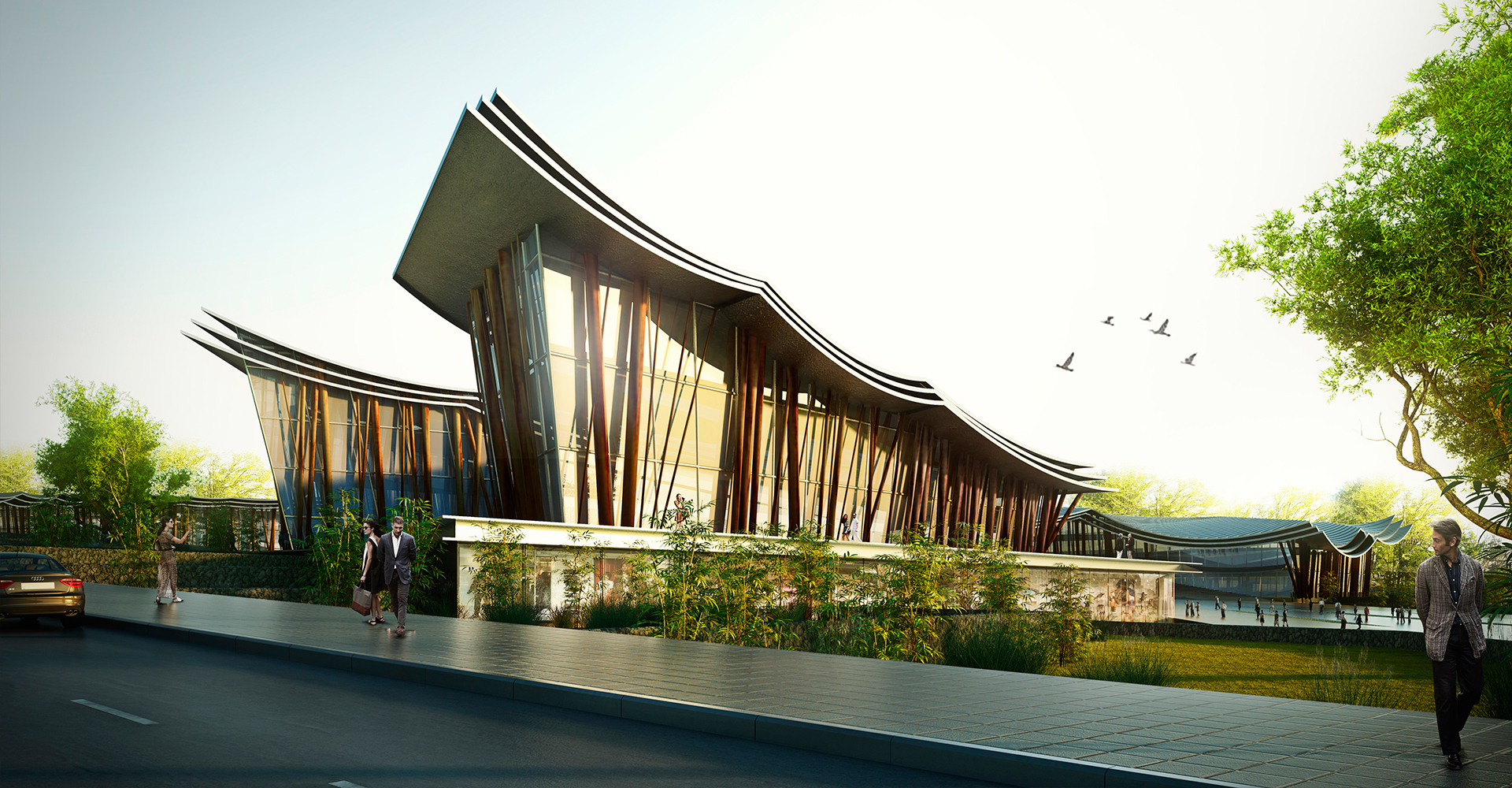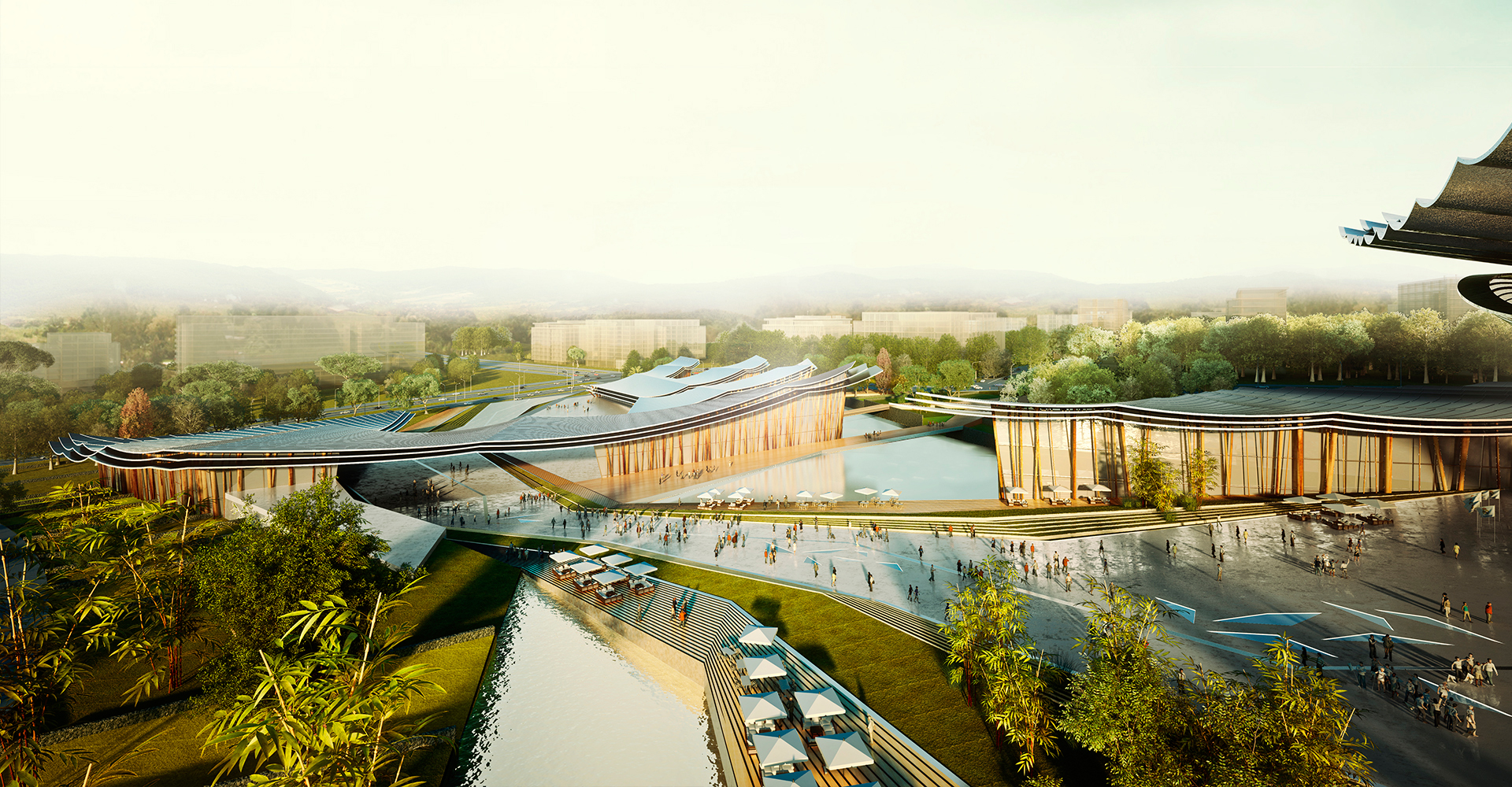Cette approche, qui a remporté le concours, transmet l’essence des rizières des terrasses de la province de Sichuan et revisite les courbures des toits traditionnels chinois et leur symbolique architecturale caractérisée par une structure en bois. Le projet prétend explorer la relation entre l’architecture traditionnelle et l’architecture contemporaine.