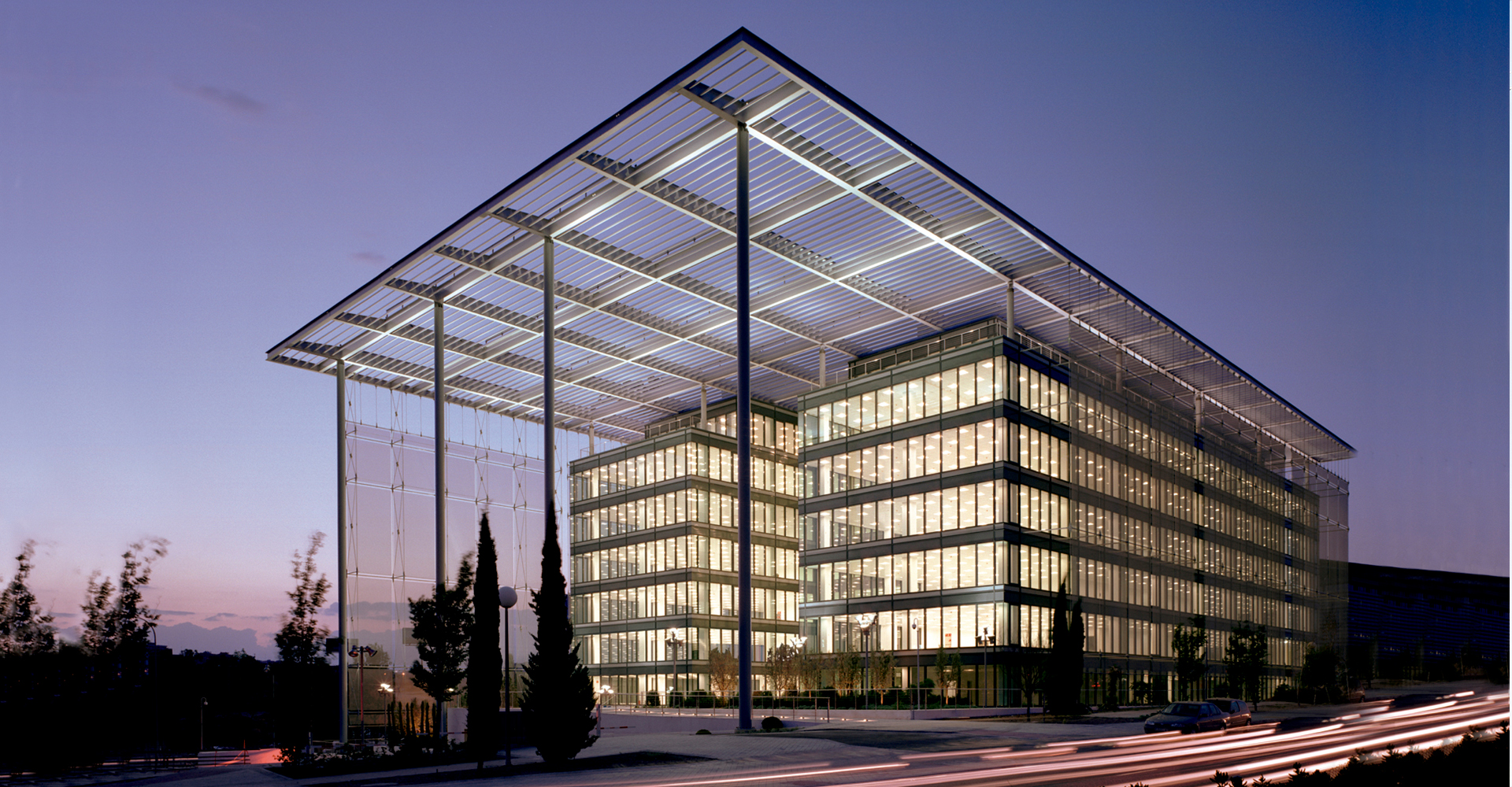 The external box is defined by the plot’s buildable volumetric limits. The internal box is the result of the law of the real estate market, with its rigid conditioning factors of open-plan floors, the position of the vertical communications cores, perimeter-surface ratio and glazed facades. At one end the functional box do not reach the edge of the protective enveloping box, providing an unoccupied vacuum which can be considered to be the “pórtico” or arcade which distinguishes and gives its name to the building.
