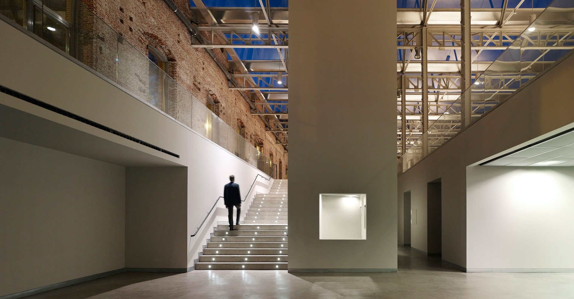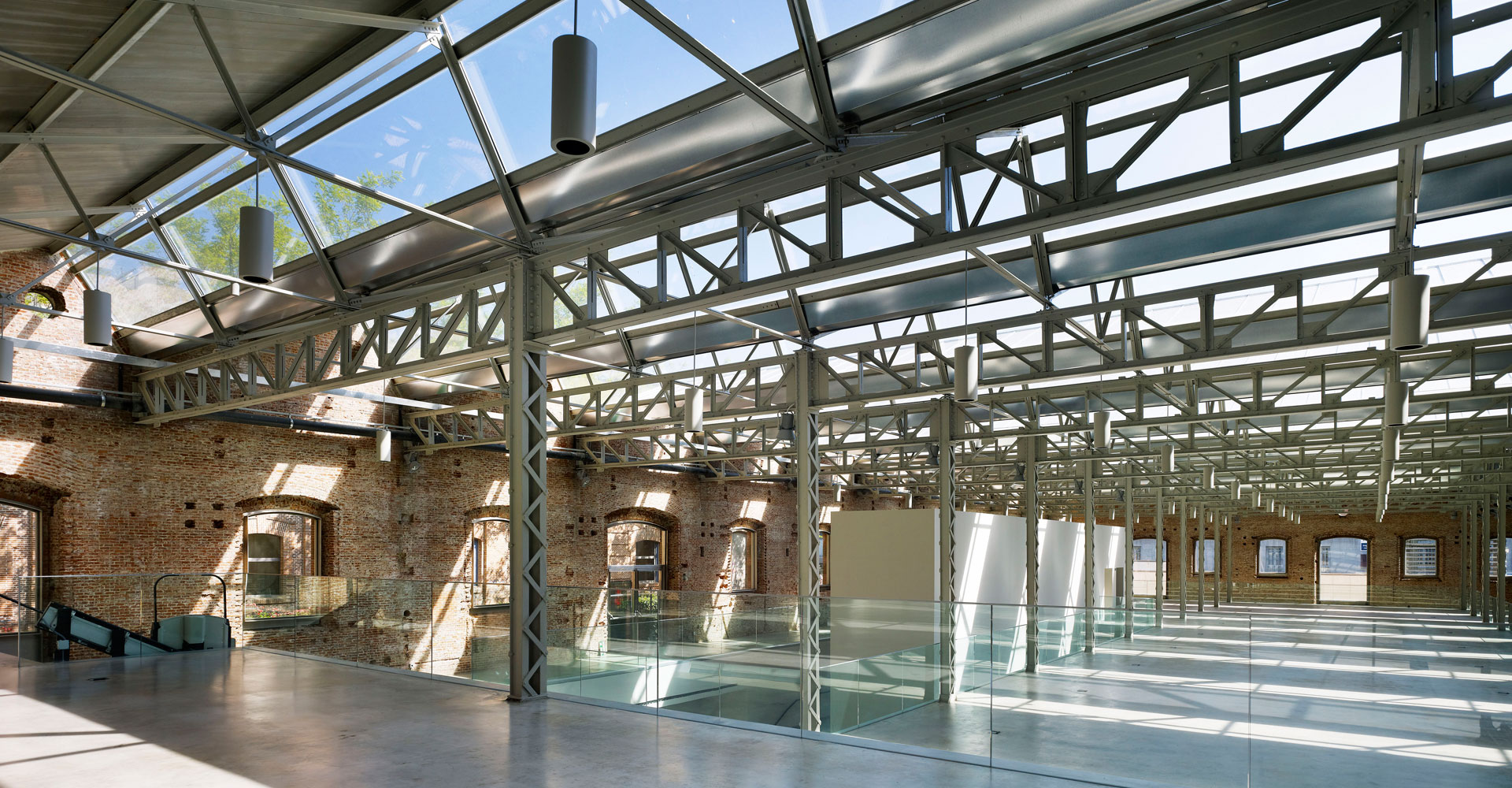 Se crea un espacio intermedio de separación entre la antigua nave y los nuevos usos que potencia el carácter del edificio existente y crea una zona de filtro y protección del exterior. Estos espacios intersticiales permiten establecer una conexión visual que propicia diferentes experiencias espaciales. Se crea un amplio espacio común en los accesos. Un lugar de convergencia, orientación y exposición que funciona como un ágora protegida, una extensión de la plaza exterior en el interior del edificio. Se desarrolla una cubierta altamente tecnificada capaz de aprovechar la luz y la ventilación natural.