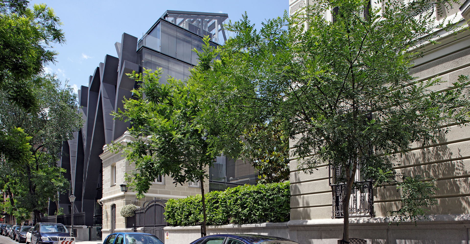 Tras restaurar el palacete realizado por Salaberry en 1907 en el Paseo de la Castellana, se proyecta un edificio de nueva planta en el antiguo jardín. Se interpreta el lugar como el jardín que es, evitando tratarlo como si sólo fuese un solar. Por tanto, la referencia del proyecto no son las heterogéneas arquitecturas que lo circundan, ni siquiera el más longevo de ellos –el palacete de Salaberry– sino lo que es el lugar: un jardín.