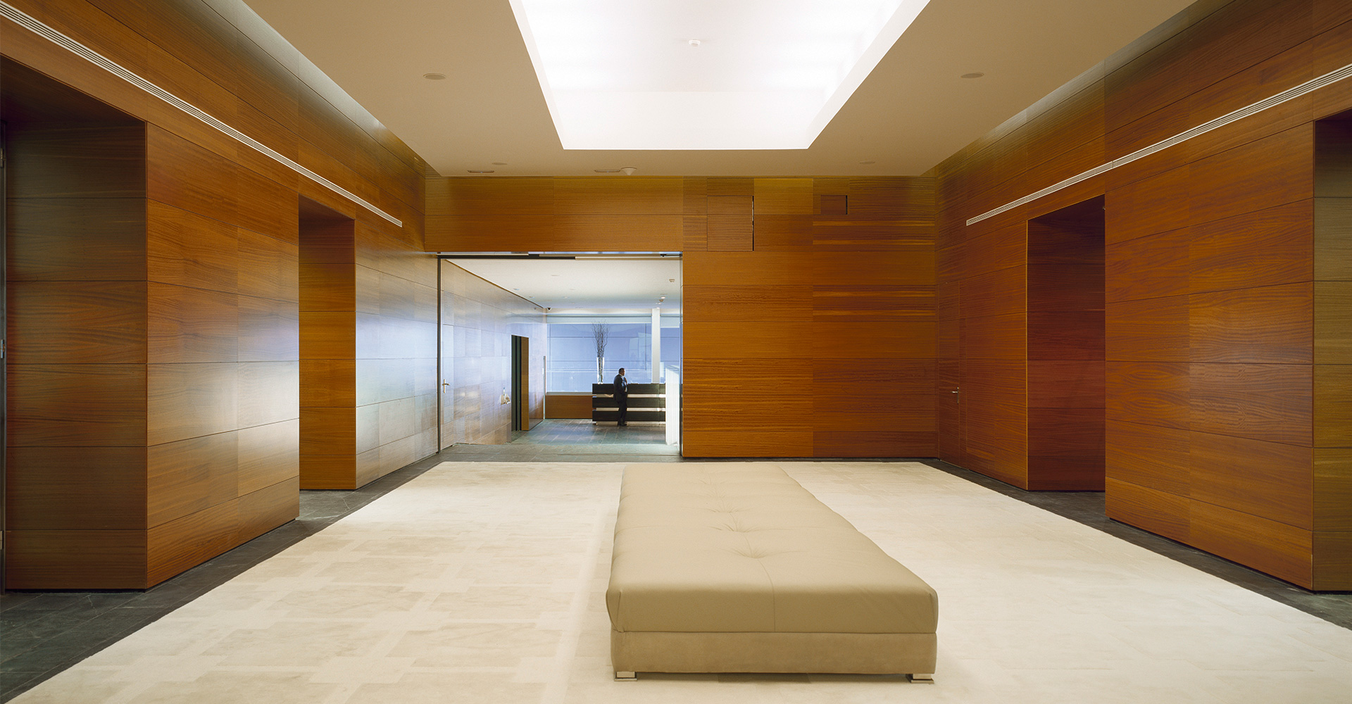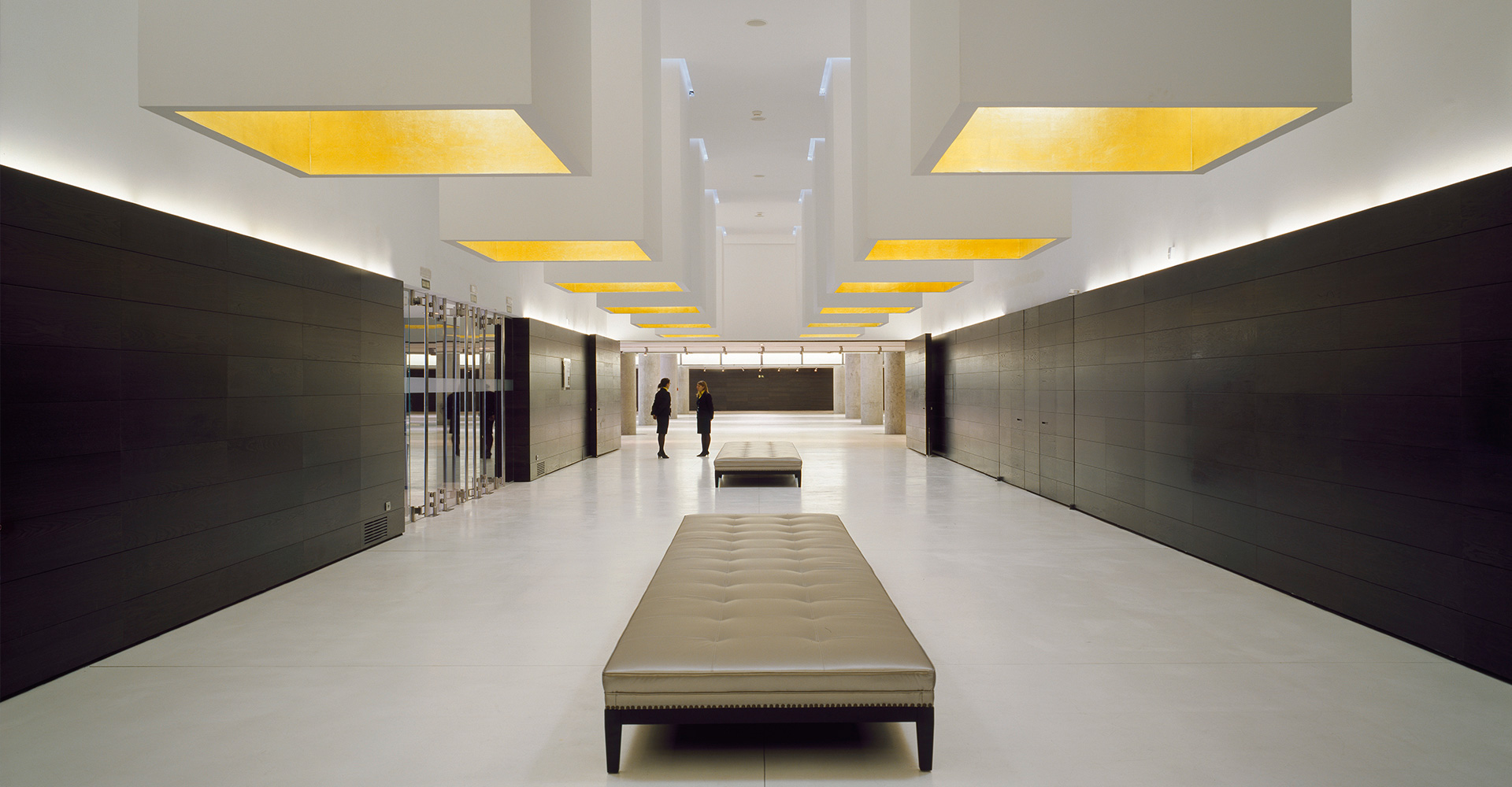 El propósito más importante del diseño interior de la sede de Telefónica ha sido proporcionar un ambiente de trabajo agradable y motivador para todos los trabajadores que lo utilizan. La calidad ambiental de las áreas de trabajo está asegurada por la abundancia de luz natural, las vistas, la presencia permanente de vistas hacia el paisaje, además el confort térmico y acústico del edificio y la ergonomía de su mobiliario. Promovimos una sensación de espacio que era una a la vez extensa y apartada, flexible y ordenada, vital y eficiente, agradable y claramente diseñada para el trabajo.