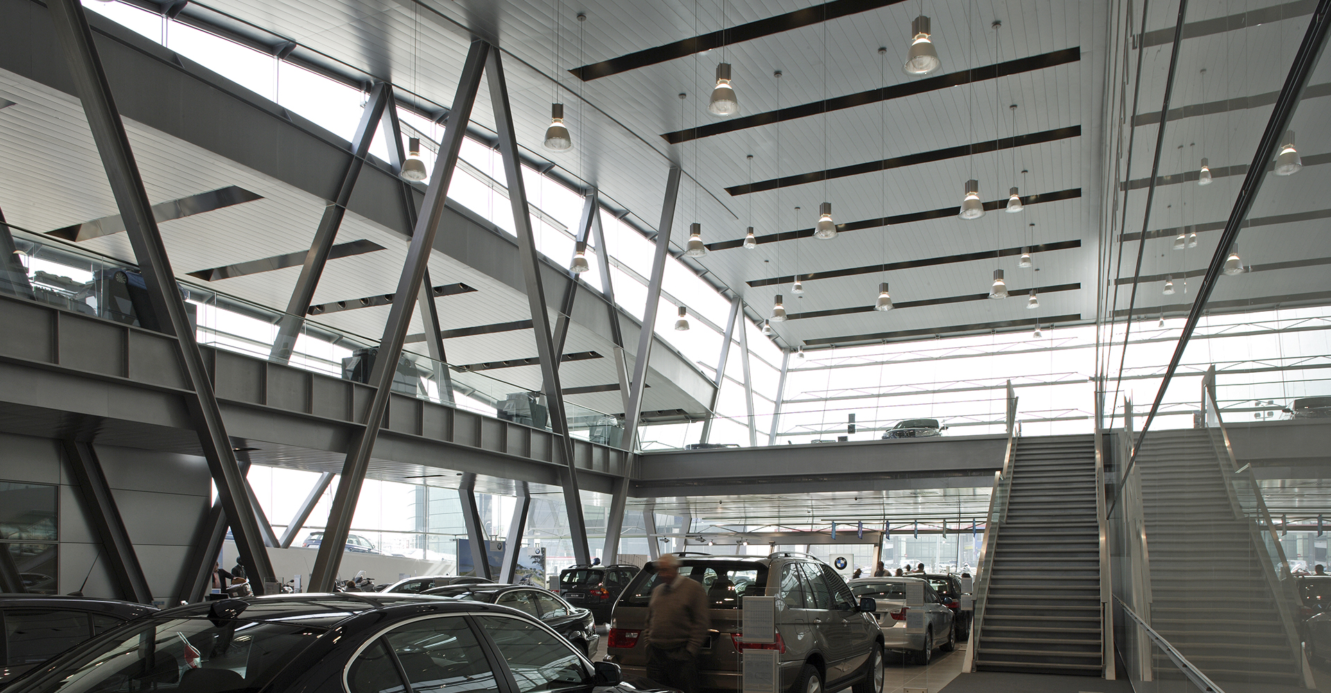 Crear un edificio para exponer automóviles consiste en cierto modo en resolver la contradicción entre continente y contenido. El desencuentro entre la inmóvil caja arquitectónica y su móvil contenido de autos. El automóvil conforma el espacio. Su esencia formal y la fluidez de su movimiento son los que modelan el espacio arquitectónico. Se dibuja un edificio contenedor que no seguirá las reglas canónicas de la arquitectura, sino las de la ciencia exacta de la dinámica de fluidos. Funcionalmente el espacio se articula en tres franjas con usos diferenciados pero unidos visual y espacialmente.