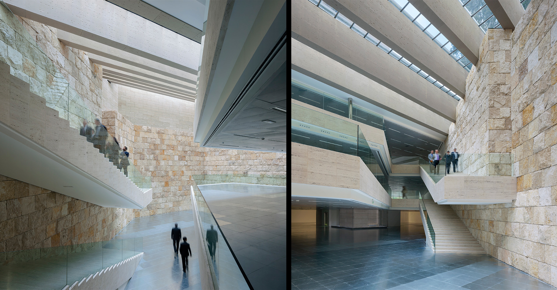 Novedosamente también este volumen se reviste con un doble muro de vidrio mateado que por efecto contrainvernadero, solventa los problemas de insolación de los muros cortina, acentúa la ligera transparencia de la torre y contribuye a su percepción como masa que no pesa.