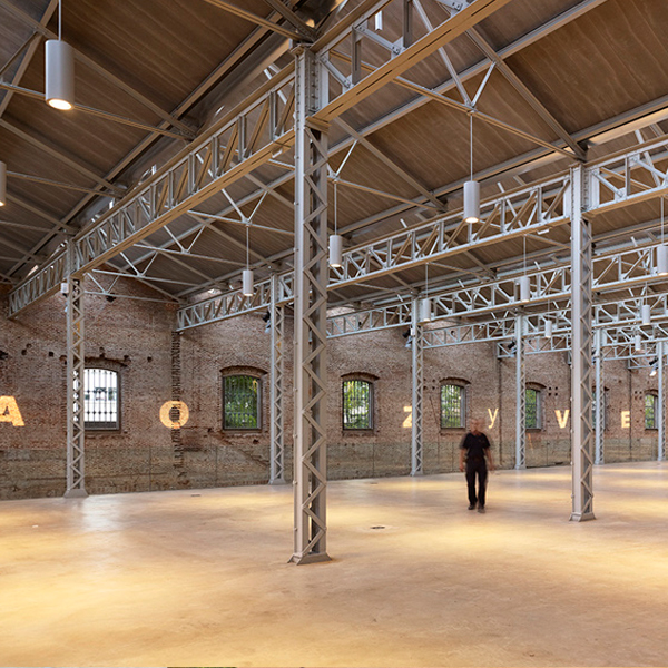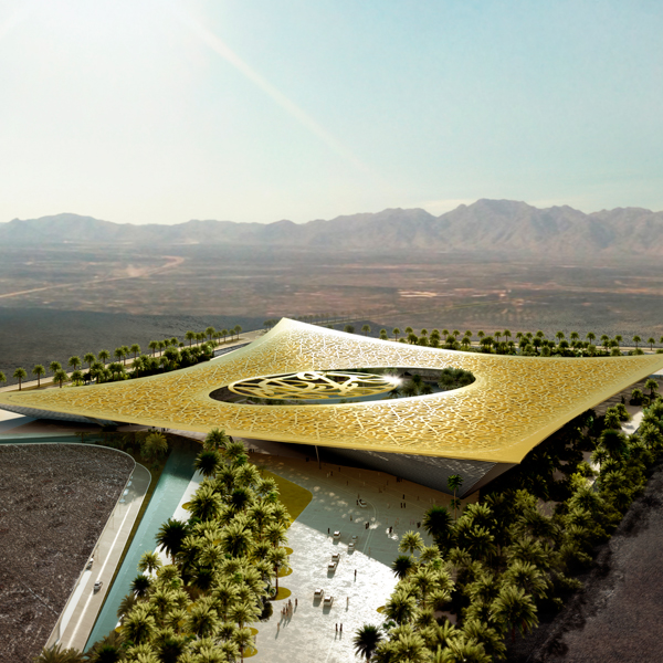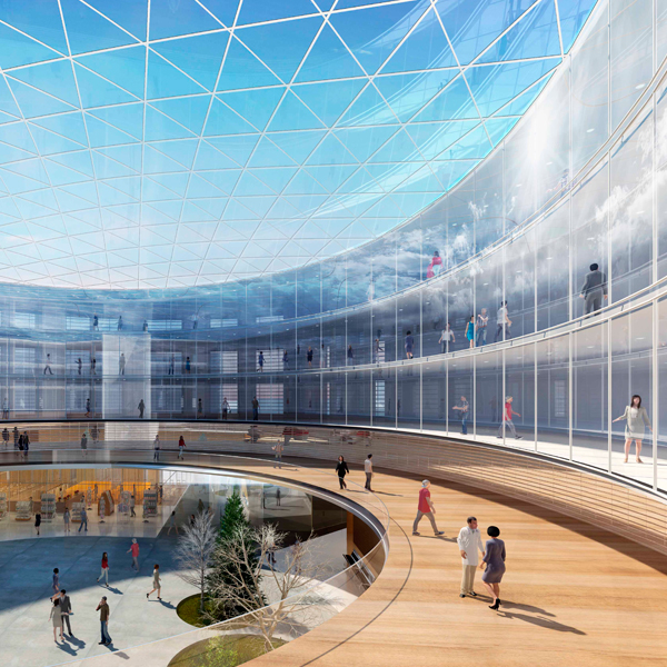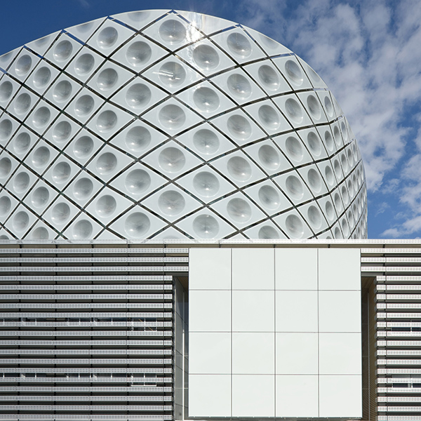 Un espace culturel composé de trois volumes interdépendants, dans lequel ressort une énorme lanterne centrale de cristal en forme de cube