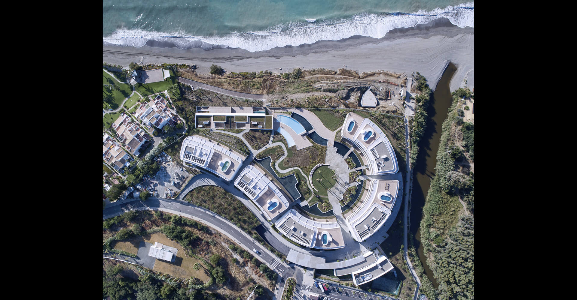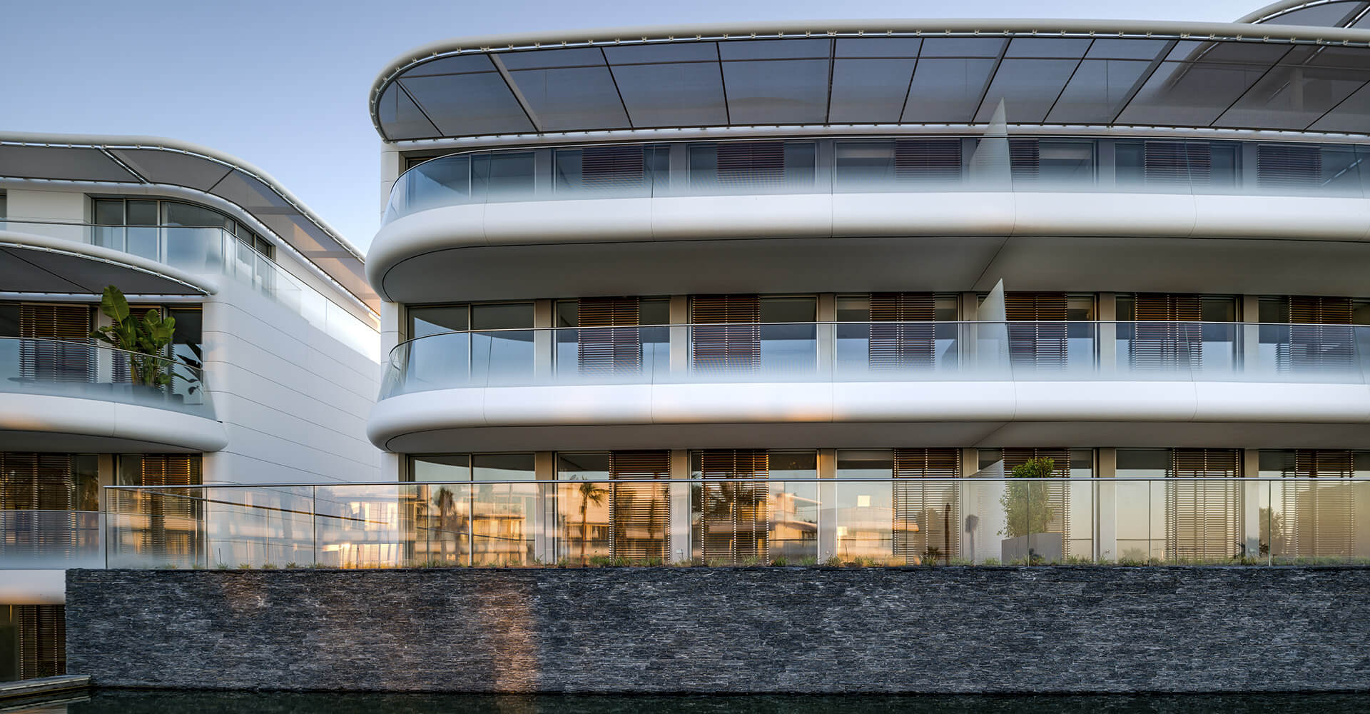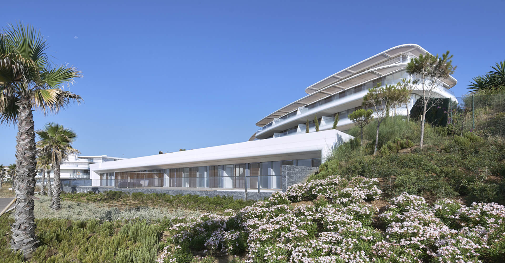 This building is the architectural embodiment of the wave’s movements; its balustrades, its terraces, its fabric awnings, make us doubt whether we are really in a building or in a boat beached on the shore. The project is designed to remind people, at all times, that they are living at first sea line. Large glass windows promote constant reference to the Mediterranean light, the sea, the beach, the horizon, the distant views ... And these are the qualities that make Costa Natura a unique place and ultimately, an exciting time for the most real luxury.